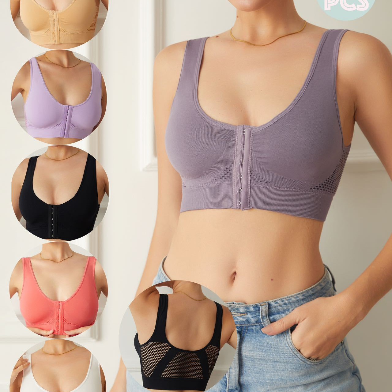 3114 # 国境を越えた欧米のフロントボタン女性のブラジャー防震美背金通気帯胸パッドワイド肩運動下着