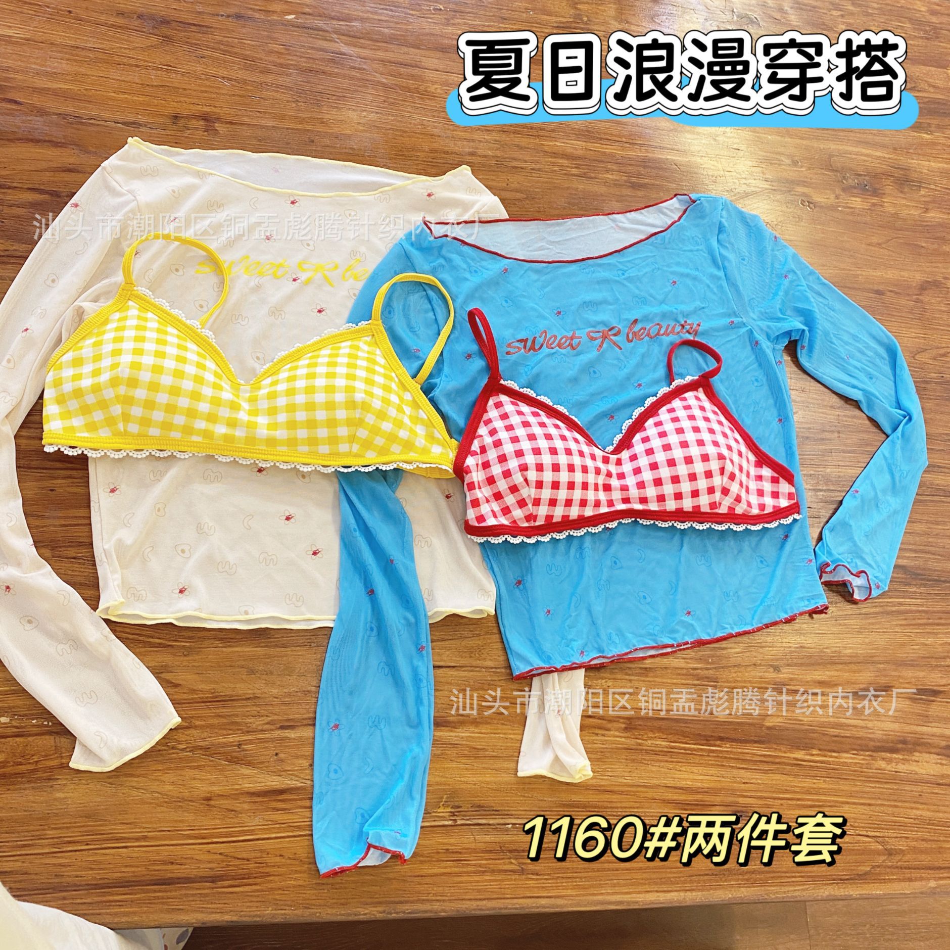 甘いホットガールレースチェック柄ブラジャーブラジャー女性のキャミソール夏のセクシーな着用小さな胸チューブトップ 1159