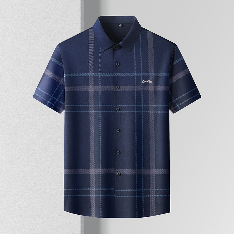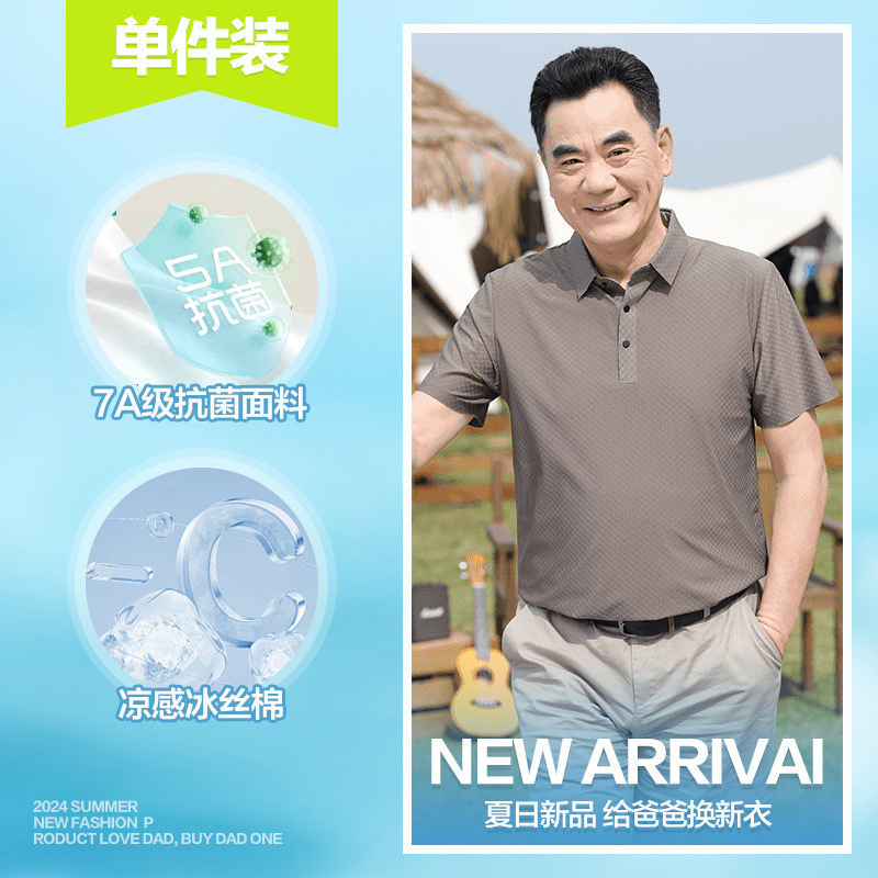 夏のメンズ半袖シームレスシャツ中年お父さんTシャツカーディガンシャツメンズアイスシルクラペルトップドロップシッピング
