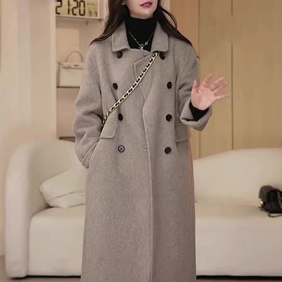 濮院ウールコート ロング丈両面カシミヤコート レディース ミドル丈 韓国風 ゆったり 多用途 ダブルボタン ウールアウター