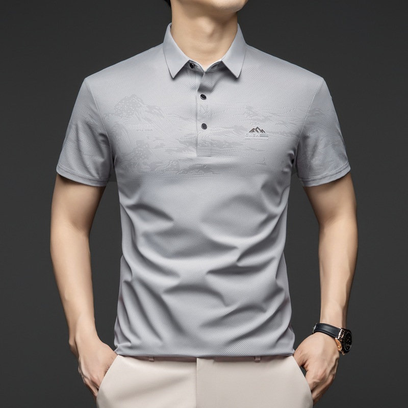 夏のメンズ半袖Tシャツ、中高年お父さんTシャツ、アイスシルクメンズTシャツ、トップス、ボトムスシャツ、メンズTシャツ