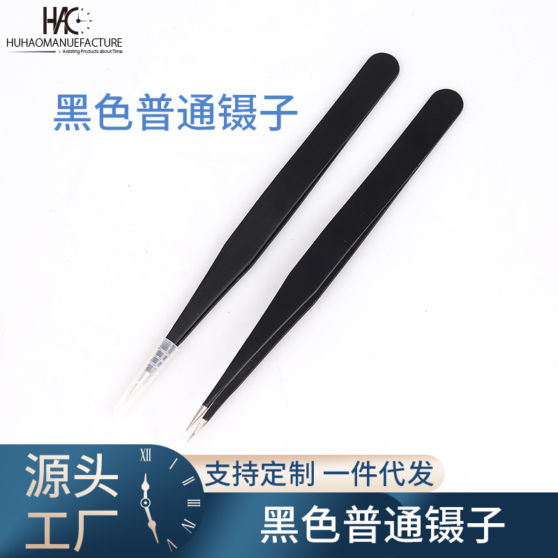 ブラックピンセット金属手帐ステッカーガジェットDIYアクセサリークリップハード先端2ピースアクセサリーピンセット