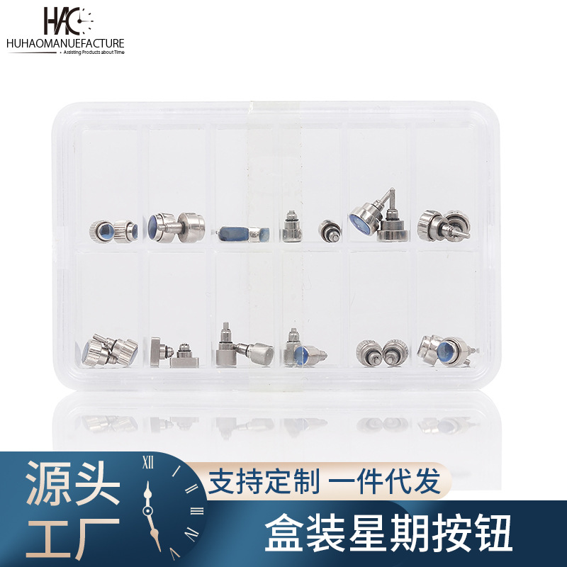 腕時計の部品は12格の腕時計の時計の時計のケースの曜日のボタンの各種の規格を詰めて時計を修理します。