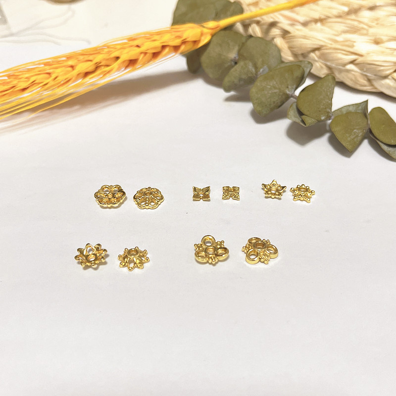 メーカー直販18kメッキ真金保色花托透かし彫り花びらアクセサリー合金花帽子ビーズdiyアクセサリー部品