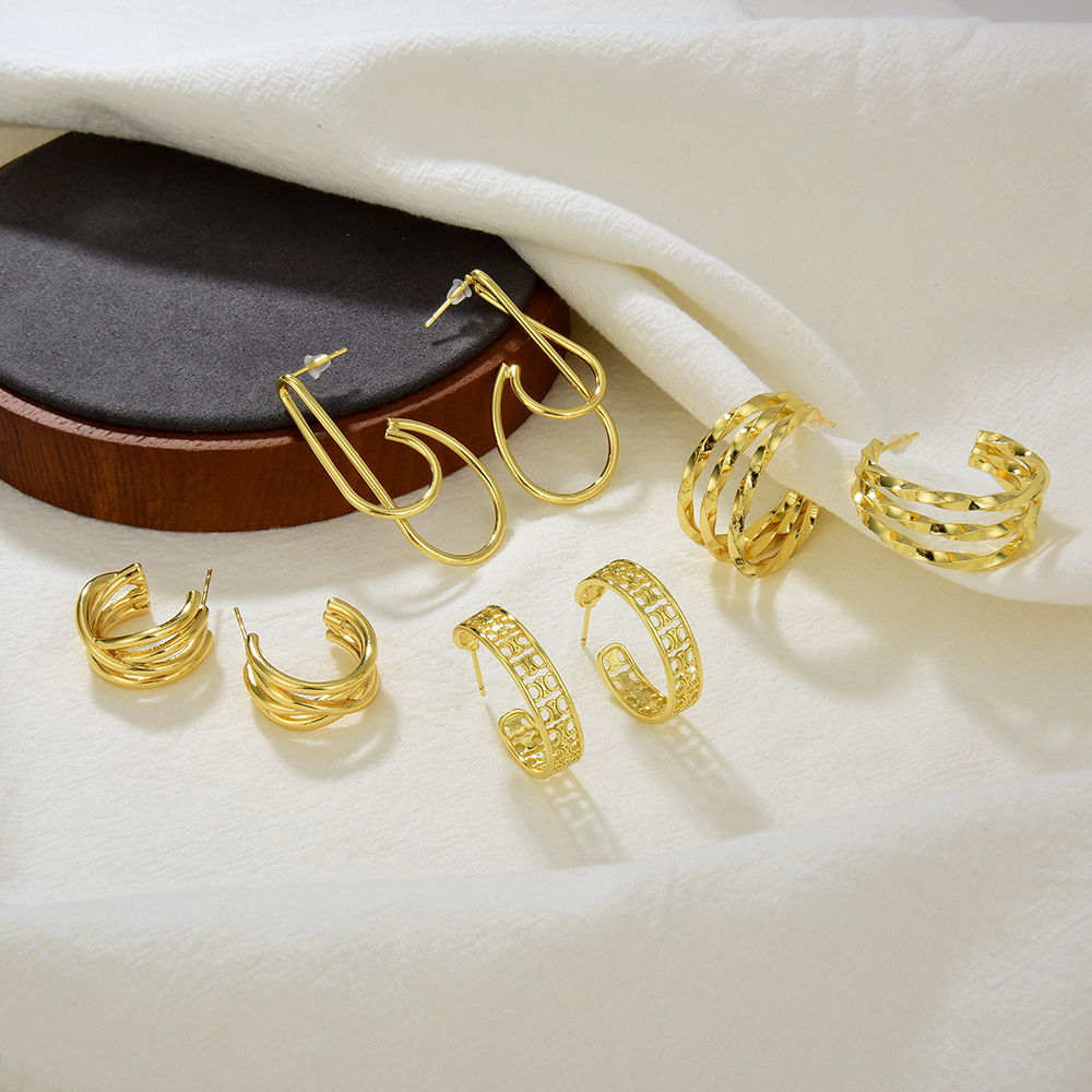 誇張素圏c字型銅保色女性イヤリングアクセサリー三層麻花透かし彫り縞音符耳飾りアクセサリー