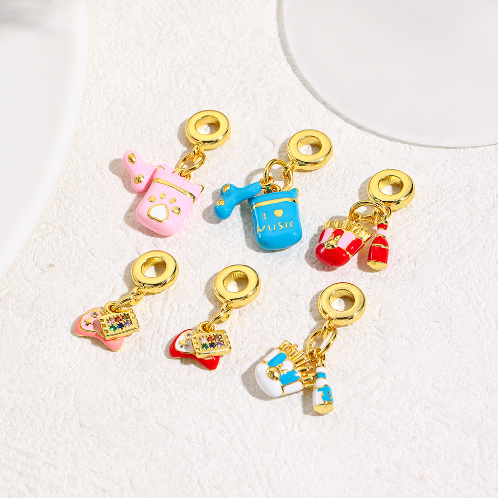 国境を越えた人気のオイルドリップヘッドフォンゲームアクセサリーフライドポテトコーラ大穴ビーズペンダントブレスレット DIY ジュエリーアクセサリー