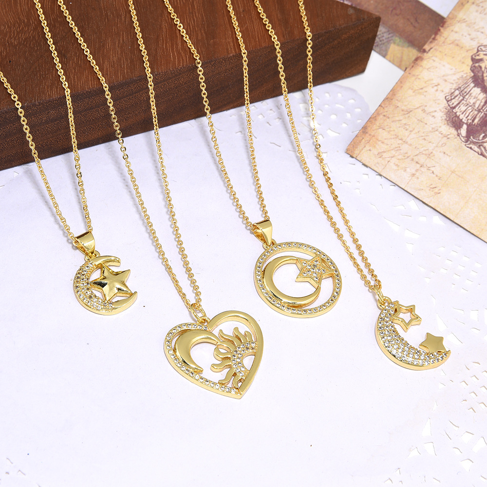 シンプルな金色の銅はジルコンを入れてハート型のペンダントを愛します。