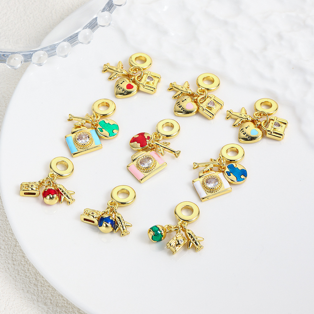 旅行シリーズの油を注ぐ飛行機のカメラの地球儀の組み合わせの大きい穴のビーズのペンダントの銅のブレスレットのネックレスのビーズの部品