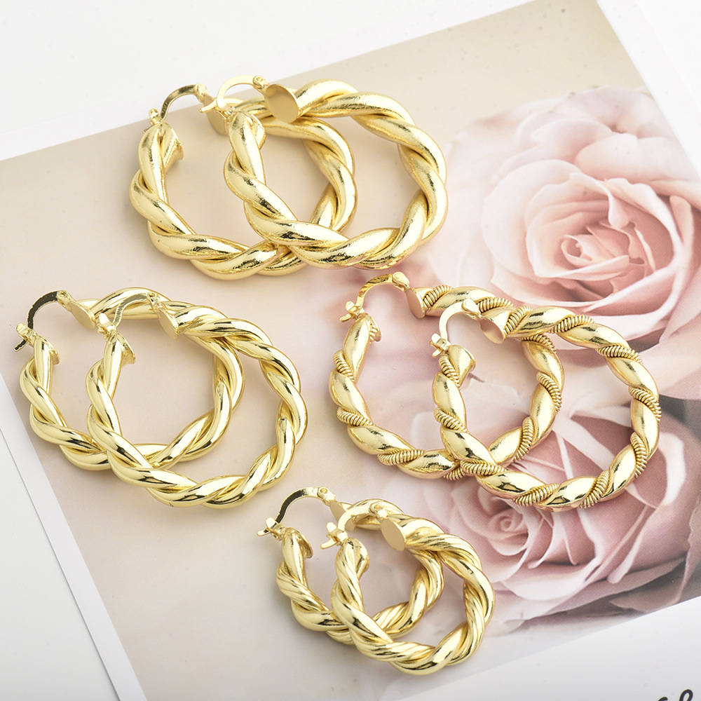 韓国版誇張o字形麻花中空イヤリング銅保色メッキスパイラル女性耳飾りメーカー直販卸売り