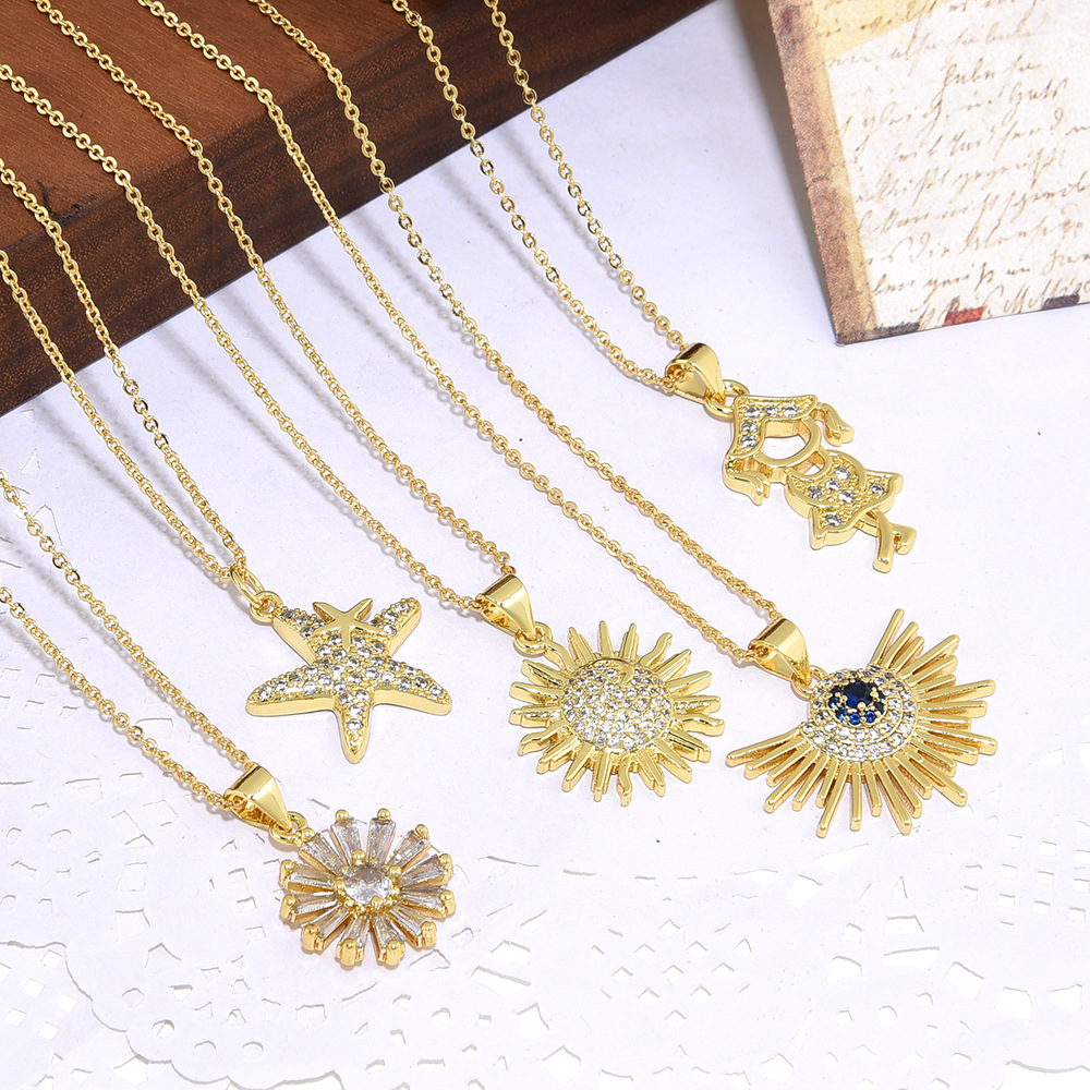 複数の金色の銅がダイヤモンドジルコン海星太陽花ペンダントo字ネックレス女性アクセサリーかわいい女の子ペンダント