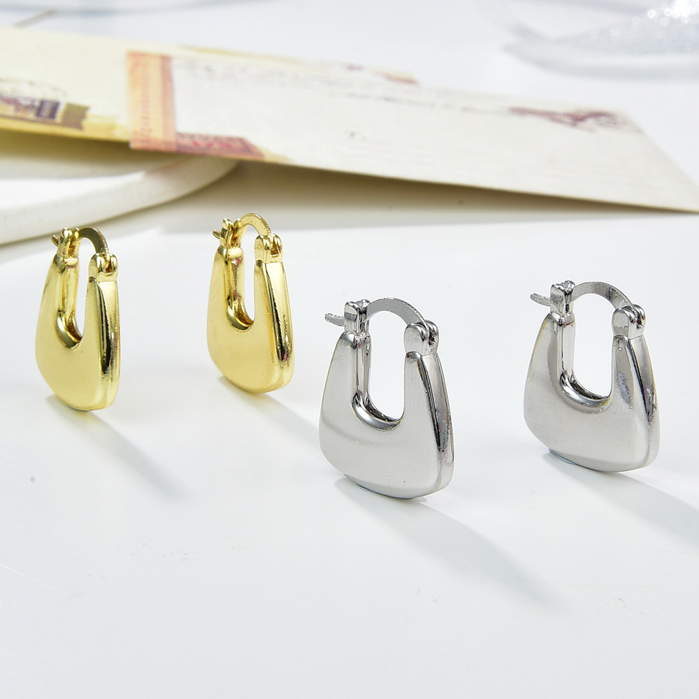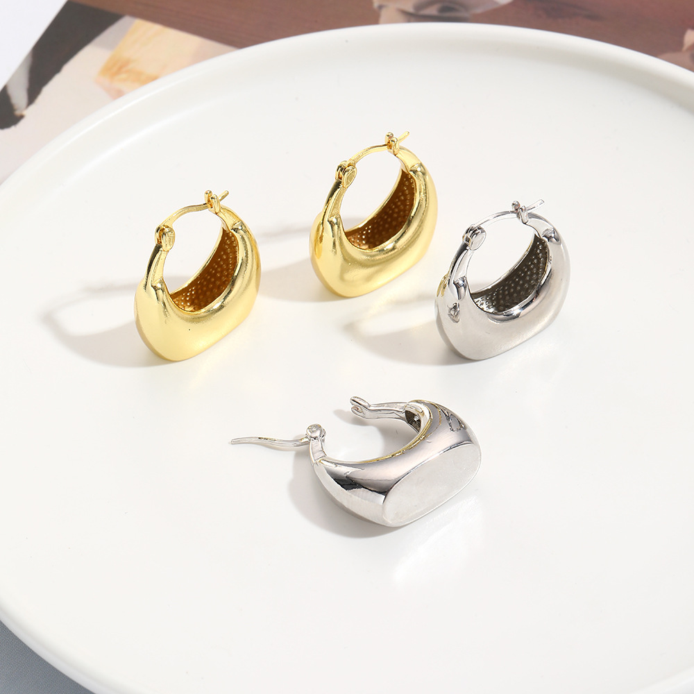 銅メッキ保色幾何学型光沢面透かし彫り豆ピアス女性ファッションシンプル素金月亮形イヤリングピアス