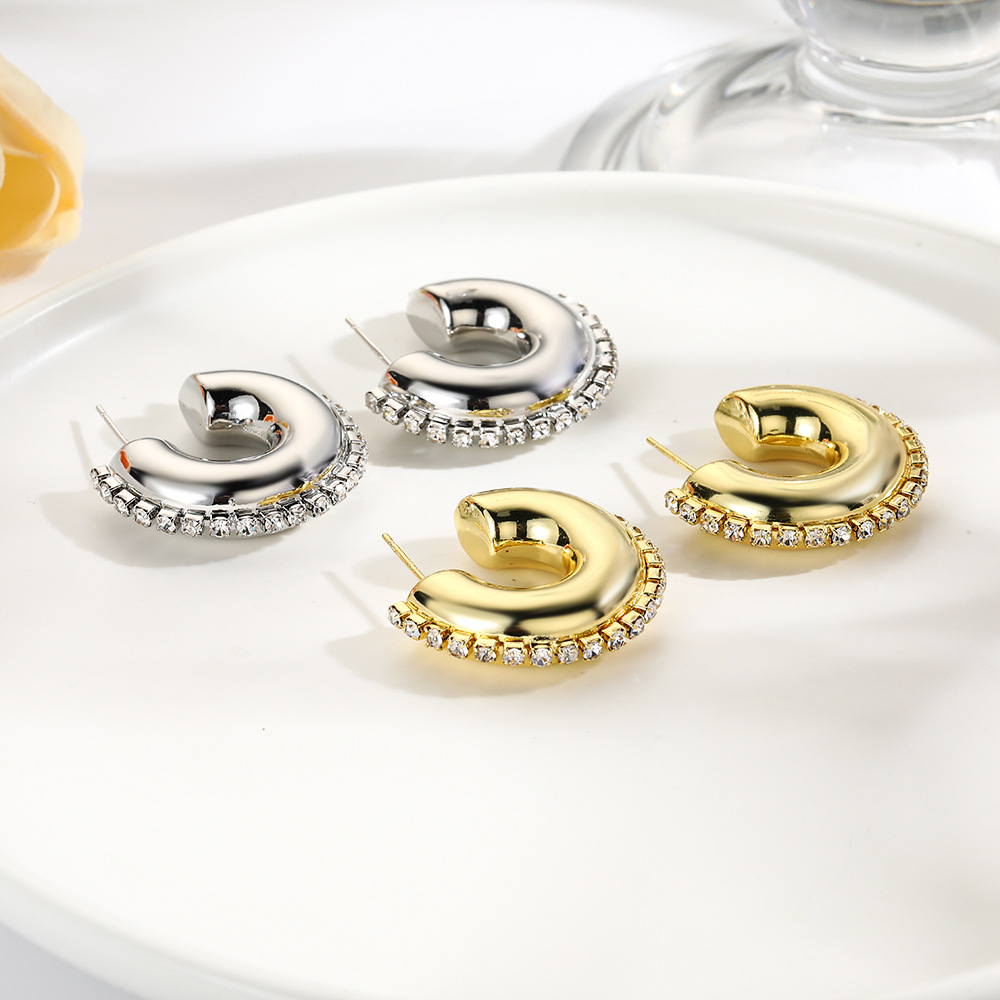クロスボーダーの高級感シンプルな女性のハンドバッグの光沢のあるイヤリングのアクセサリーの個性的な雰囲気は、耳輪の卸売りを誇張しています。