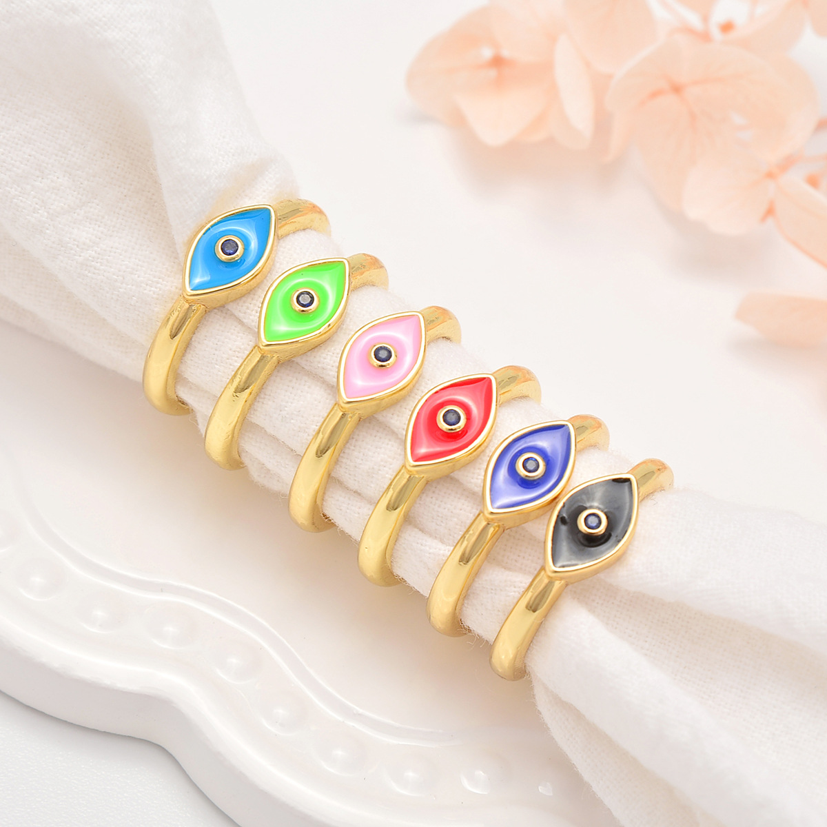 銅金メッキ色のマイクロジルコンカラー滴油開口女性指輪アクセサリー青い目活口指輪アクセサリー