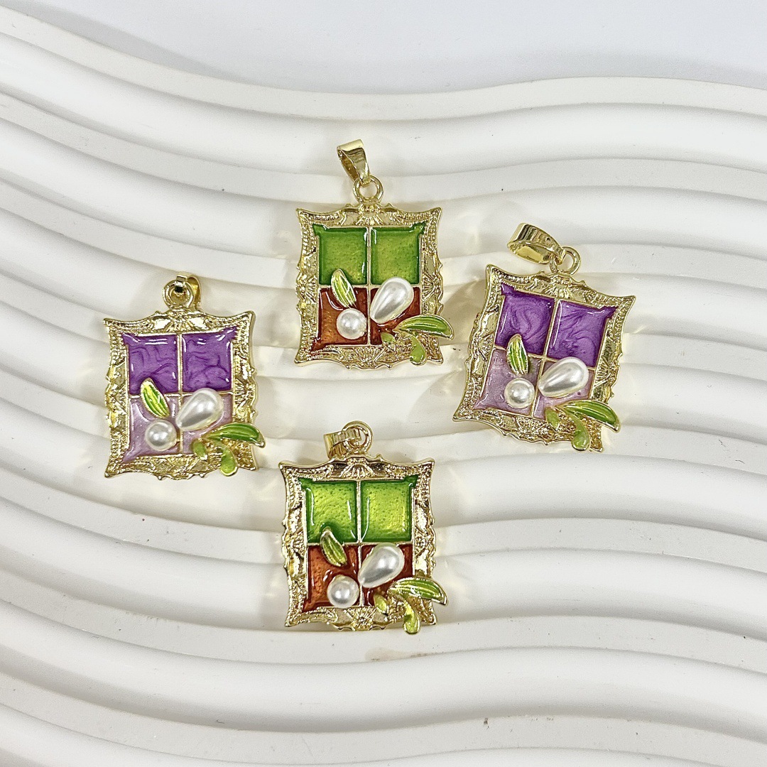 モネの花園のバロックは真珠の油のペンダントの銅の軽くて豪華な魅力の復古の油絵の風のネックレスのペンダントの部品をまねます。