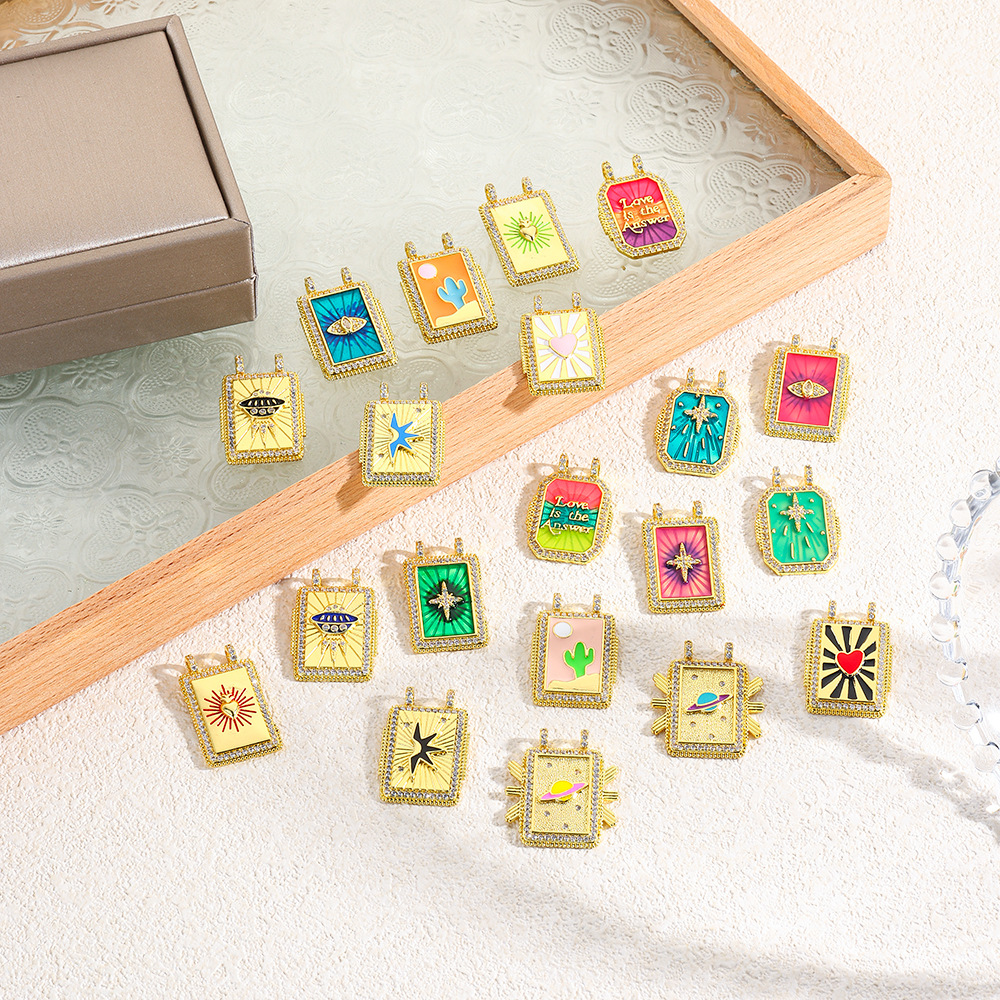 欧米のファッションの正方形のカラーの滴る油の愛 & 宇宙のタロットペンダントの性の冷たい組み合わせのネックレスの部品