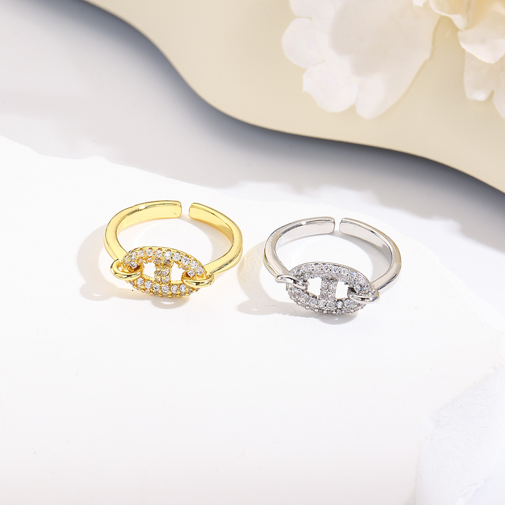 新しいファッションの幾何学的な型はジルコニウムの葉の開口の指輪に満ちています。