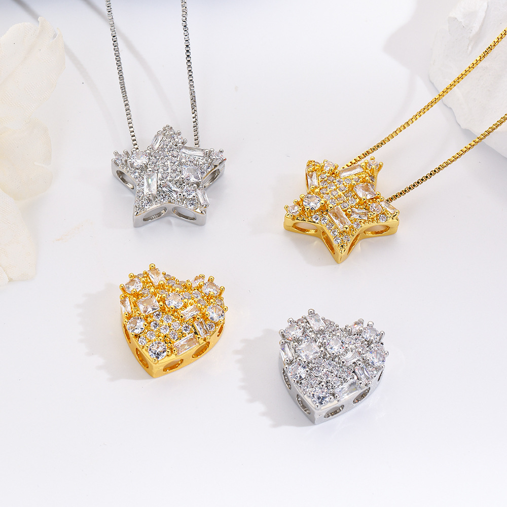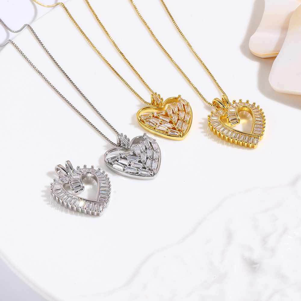 ヨーロッパとアメリカのパーソナライズされた銅メッキ 18k ライトラグジュアリースタイル輝く中空ラブジルコンネックレスペンダントファッショナブルで多用途な女性用ネックレス