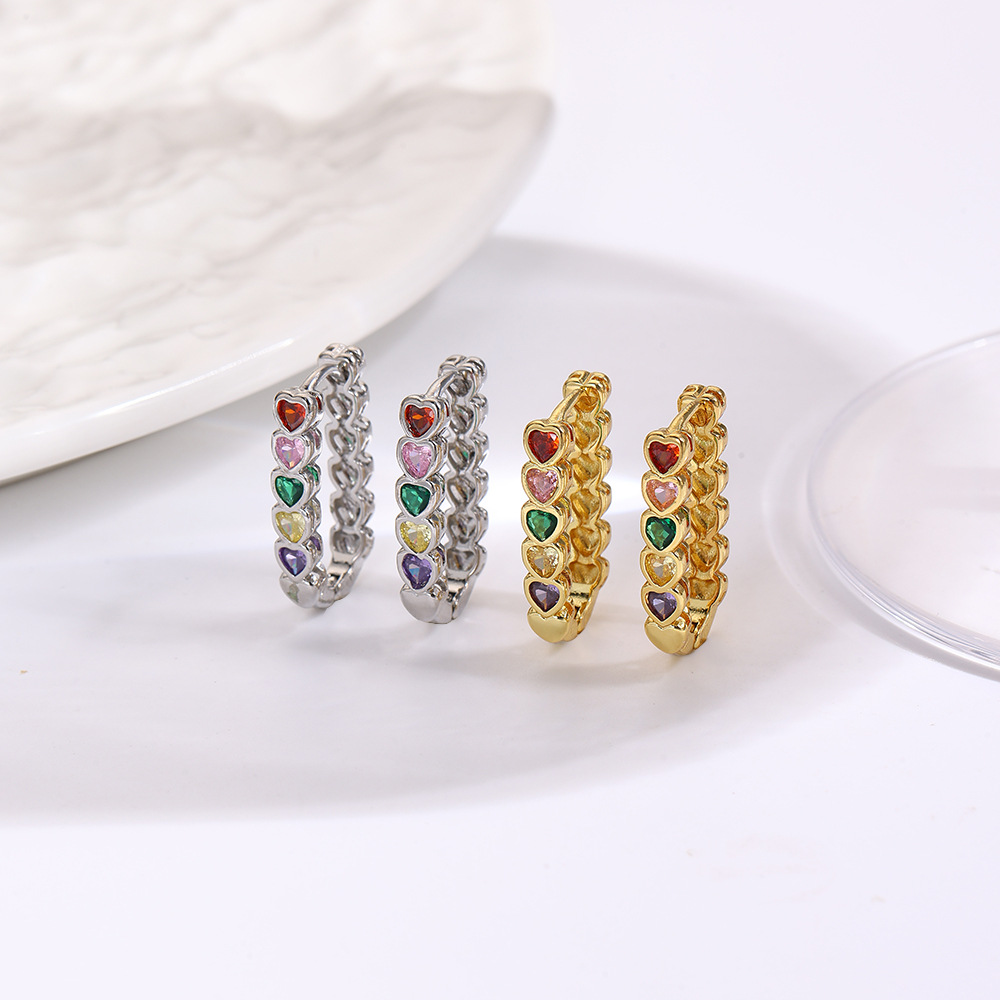 パーソナライズされたトレンディなカラフルなジルコンラブ U 字型イヤリングイヤリングジュエリー銅メッキ 18 k 色保持シンプルな女性のイヤリングジュエリー