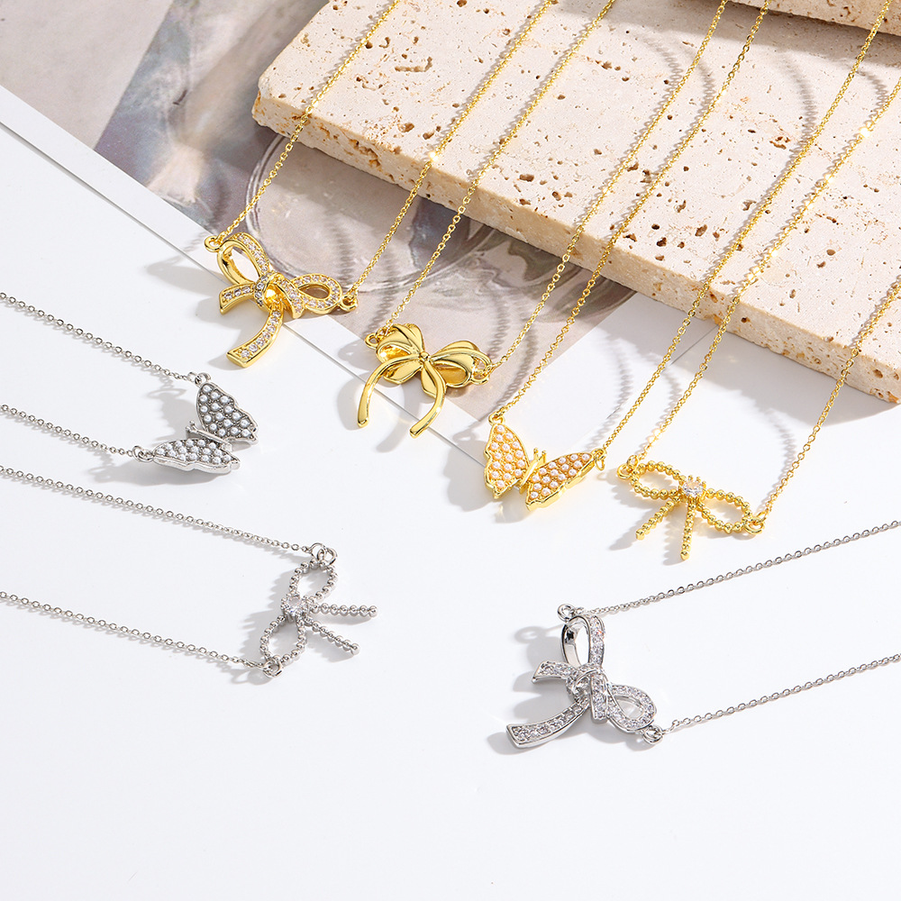 欧米の個性的な風潮の銅は18kの蝶結びの一体のネックレスのペンダントをめっきします。