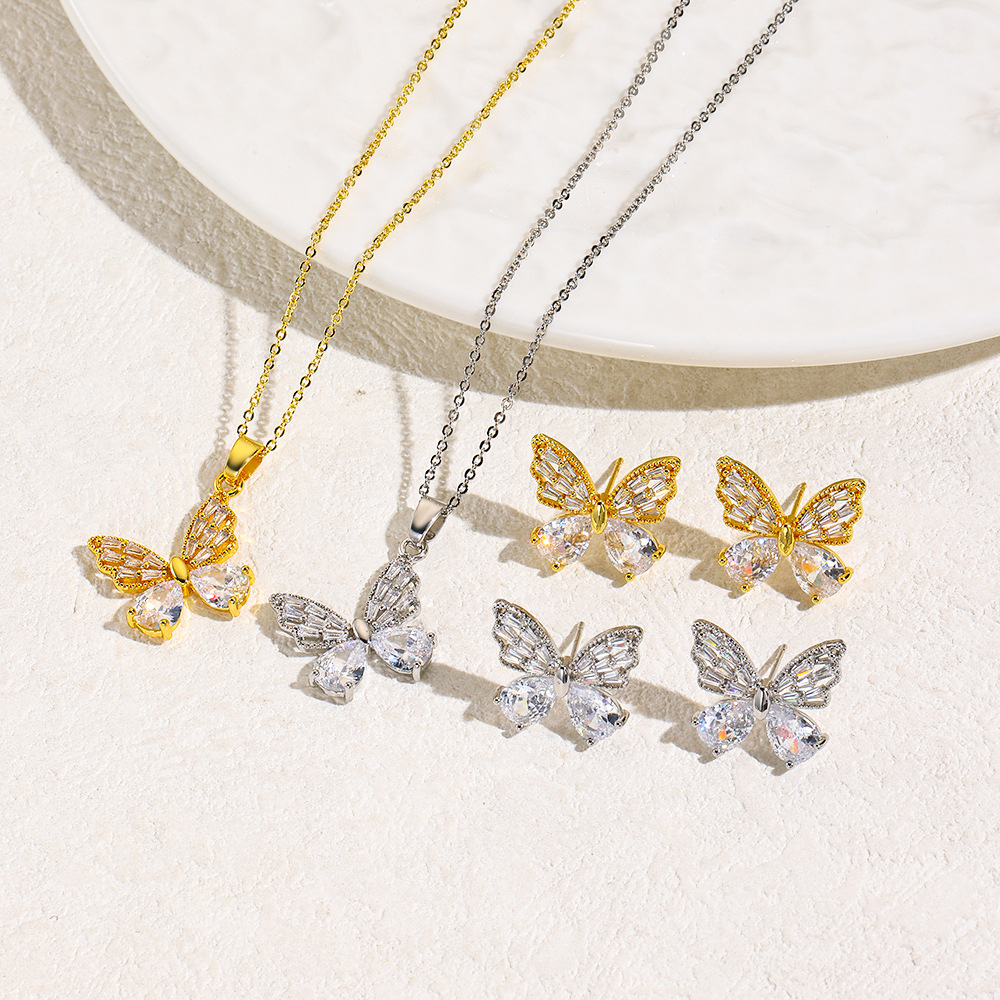 欧米の軽豪華な風の動物の蝶のピアスのO字のネックレスのペンダントの3セットの装飾品の銅の簡単な組み合わせ