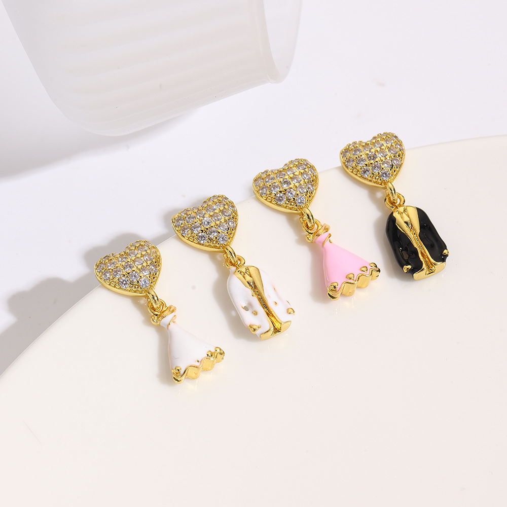 新鮮で甘い非対称オイルドリップ新郎新婦イヤリングイヤリングジュエリー女性の魅力ファッション愛フルダイヤモンドイヤリング