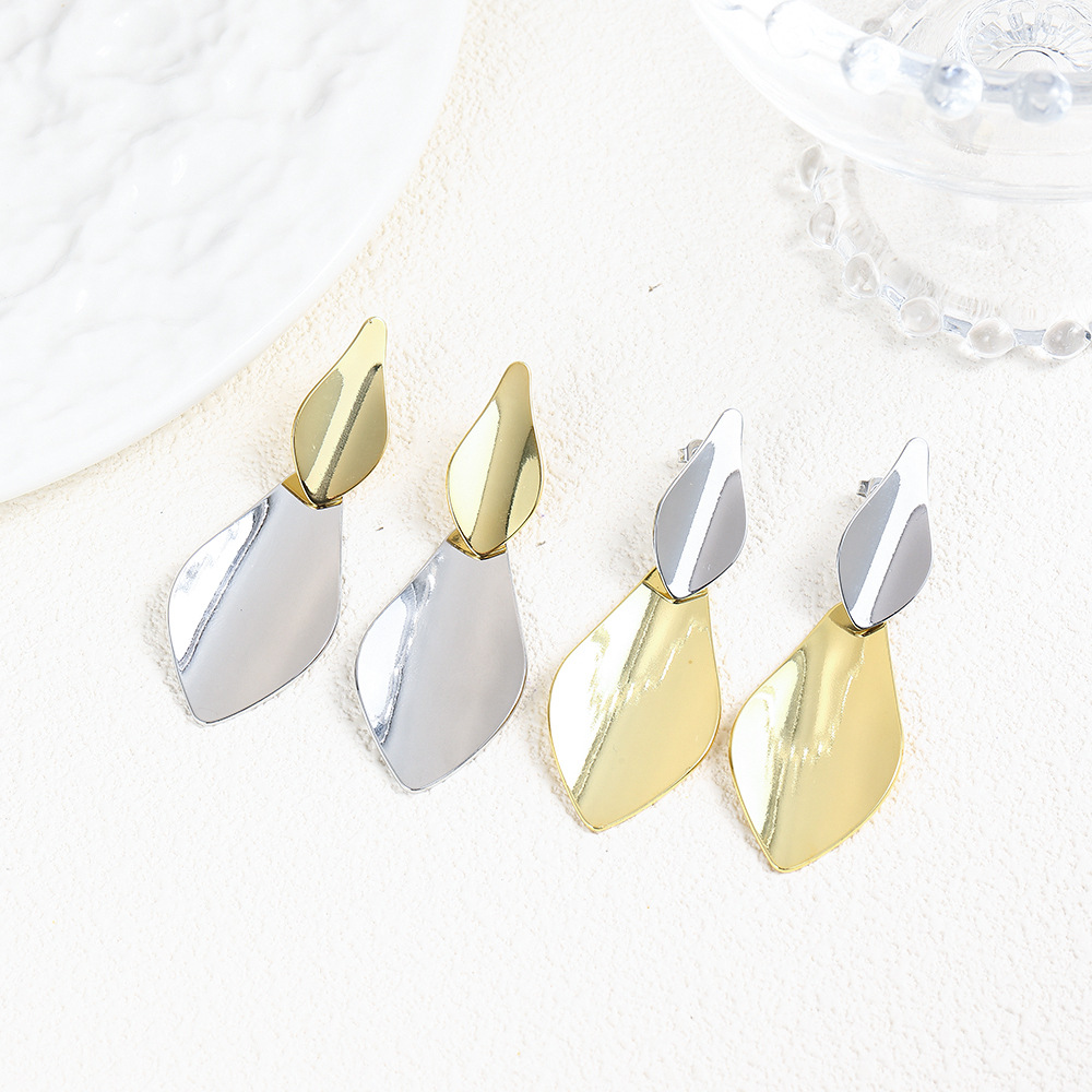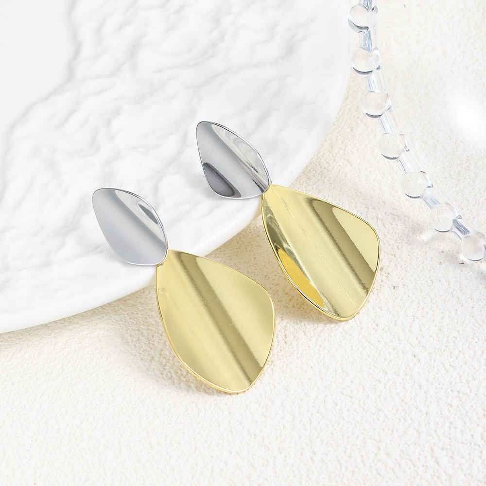 欧米のファッションの不規則な水滴は2色のイヤリングをつなぎ合わせます。