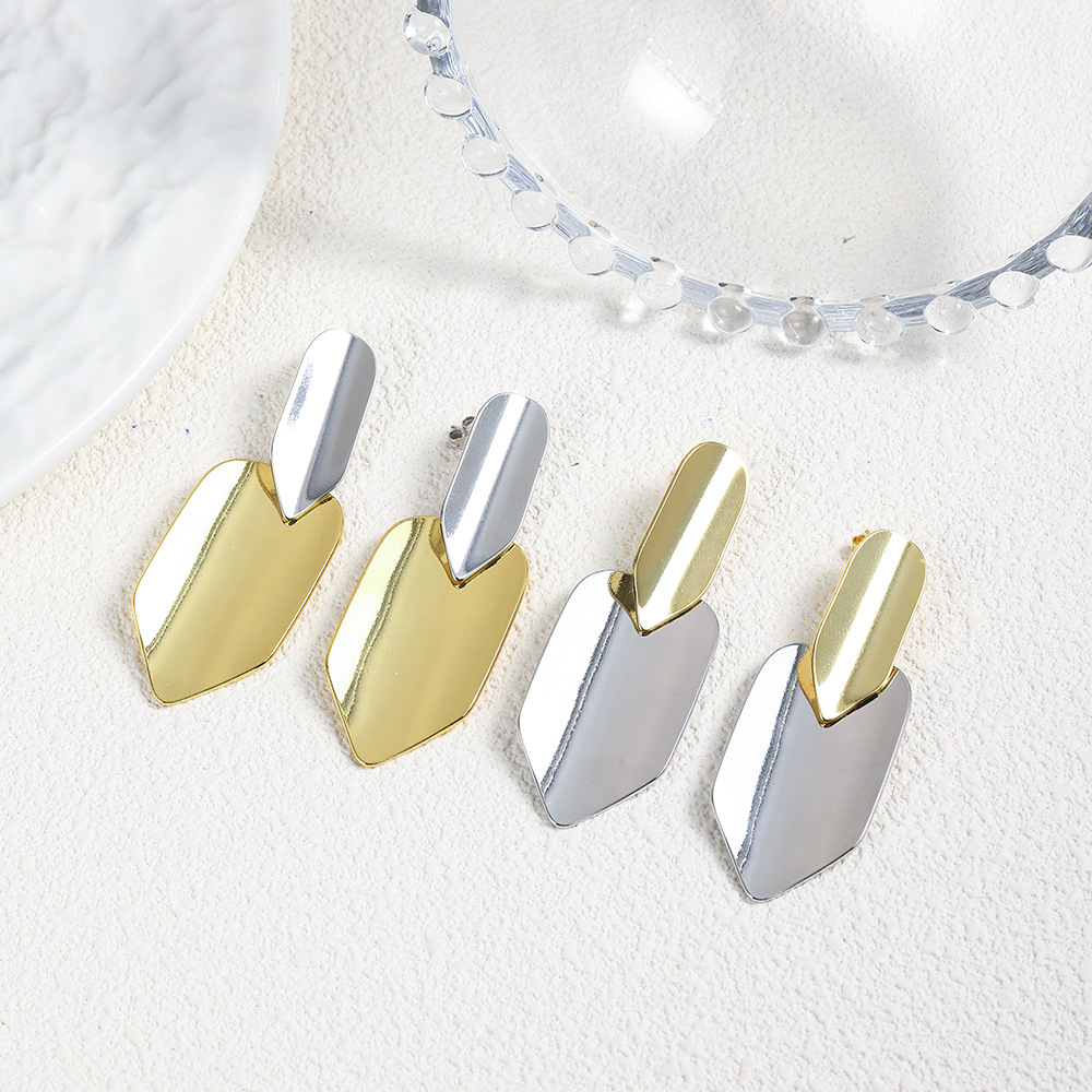 欧米のレトロな不規則な角の2色のイヤリングのイヤリングの女性の装飾品の光沢の冷たい風の三角形のイヤリングのイヤリングのイヤリング