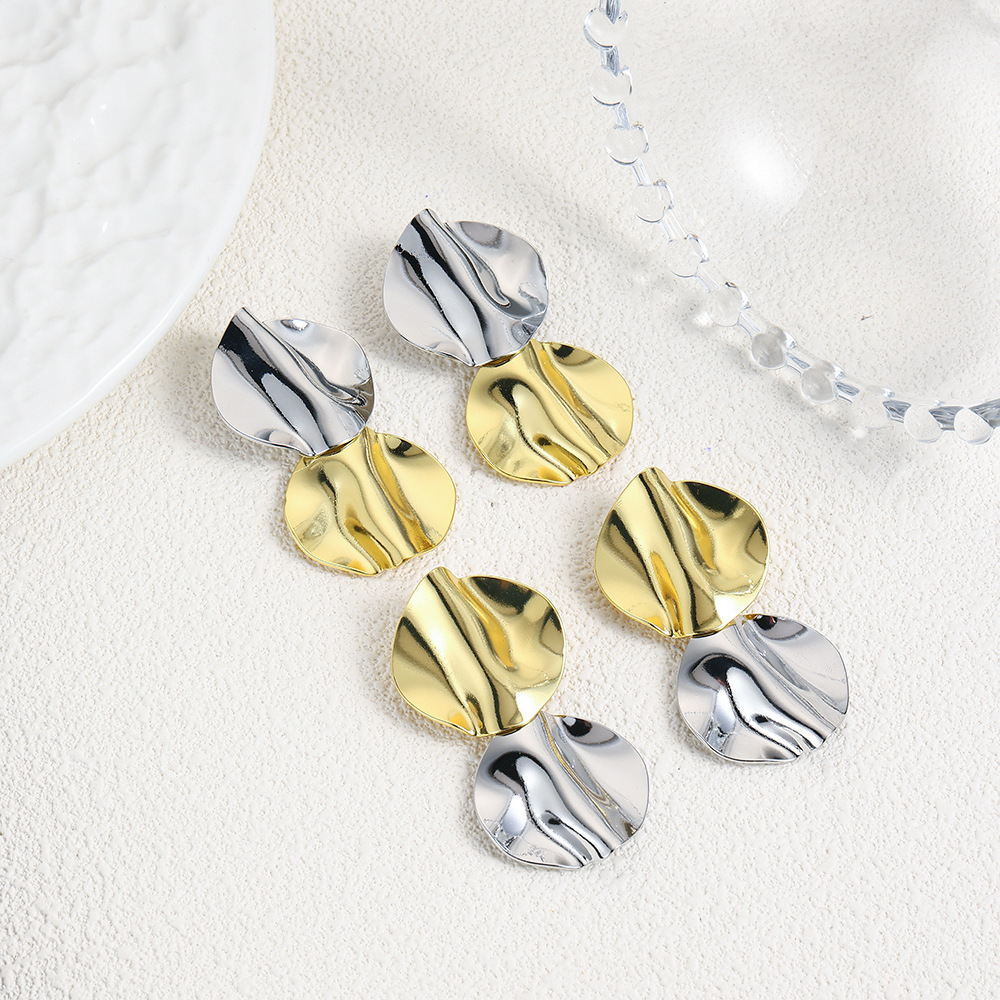 欧米のレトロな不規則な円形の2色のピアスのイヤリングの女性のアクセサリーの銅の冷たい風光面の凹凸のイヤリングのイヤリングのイヤリング