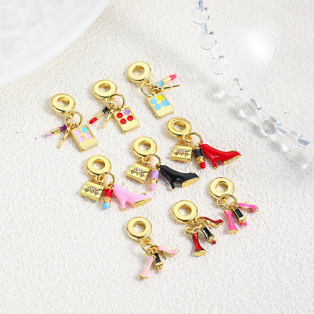 銅の組み合わせの3つのセットの滴油ハイヒールのドレスの口紅の化粧箱の大きい穴のペンダントのブレスレットのビーズのDIYの部品