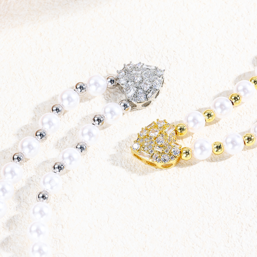 欧米の国境を越えたファッション通勤愛ジルコン模造真珠ネックレスペンダント銅メッキ18k金女性真珠ネックレス