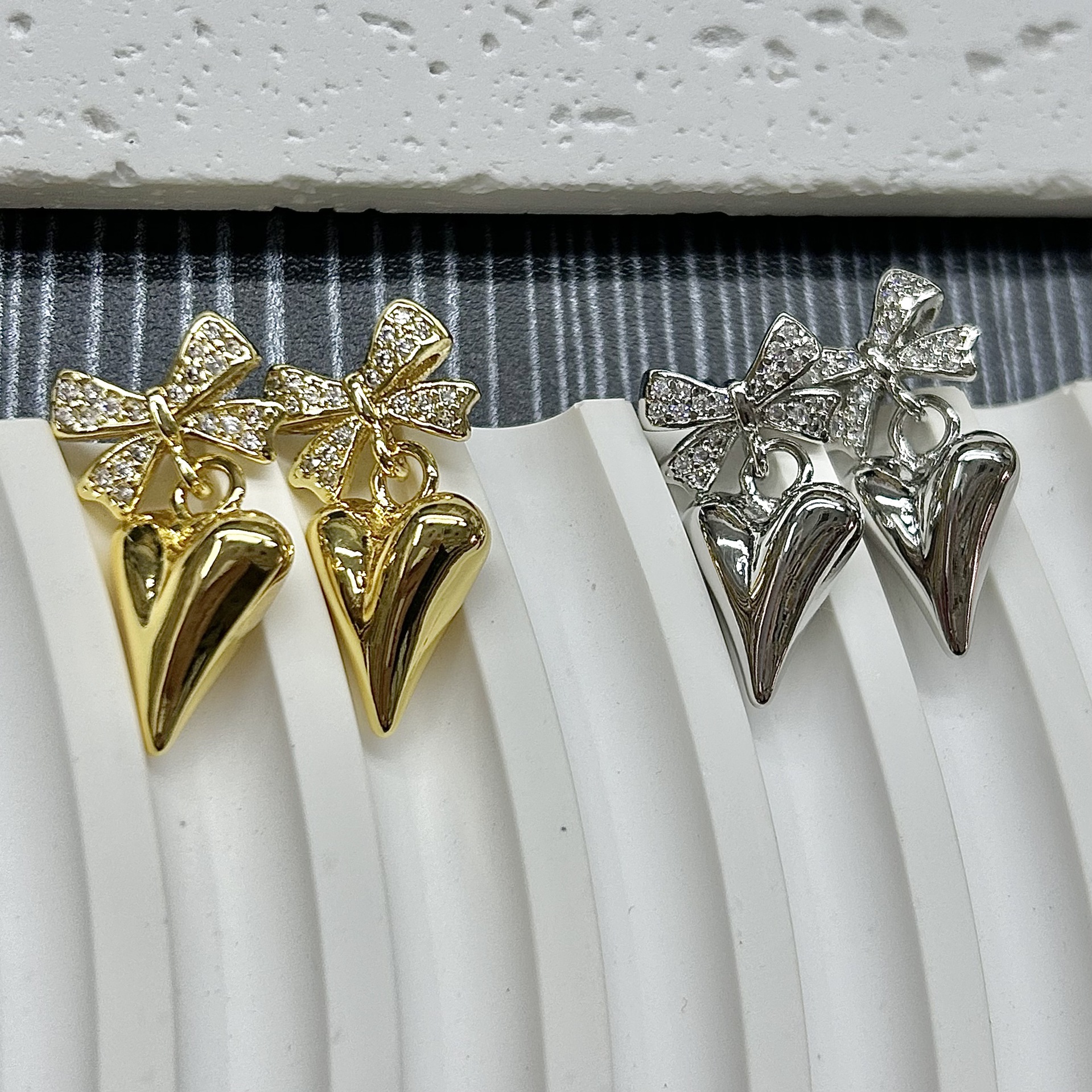 オリジナルデザインの銅メッキ18k蝶結びの愛のピアス