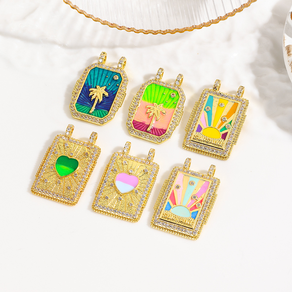 欧米のレトロな銅は18kの金の虹の愛のココナッツの木をめっきして油のタロットのブランドのペンダントのネックレスのペンダントのアクセサリーの部品を垂らします。