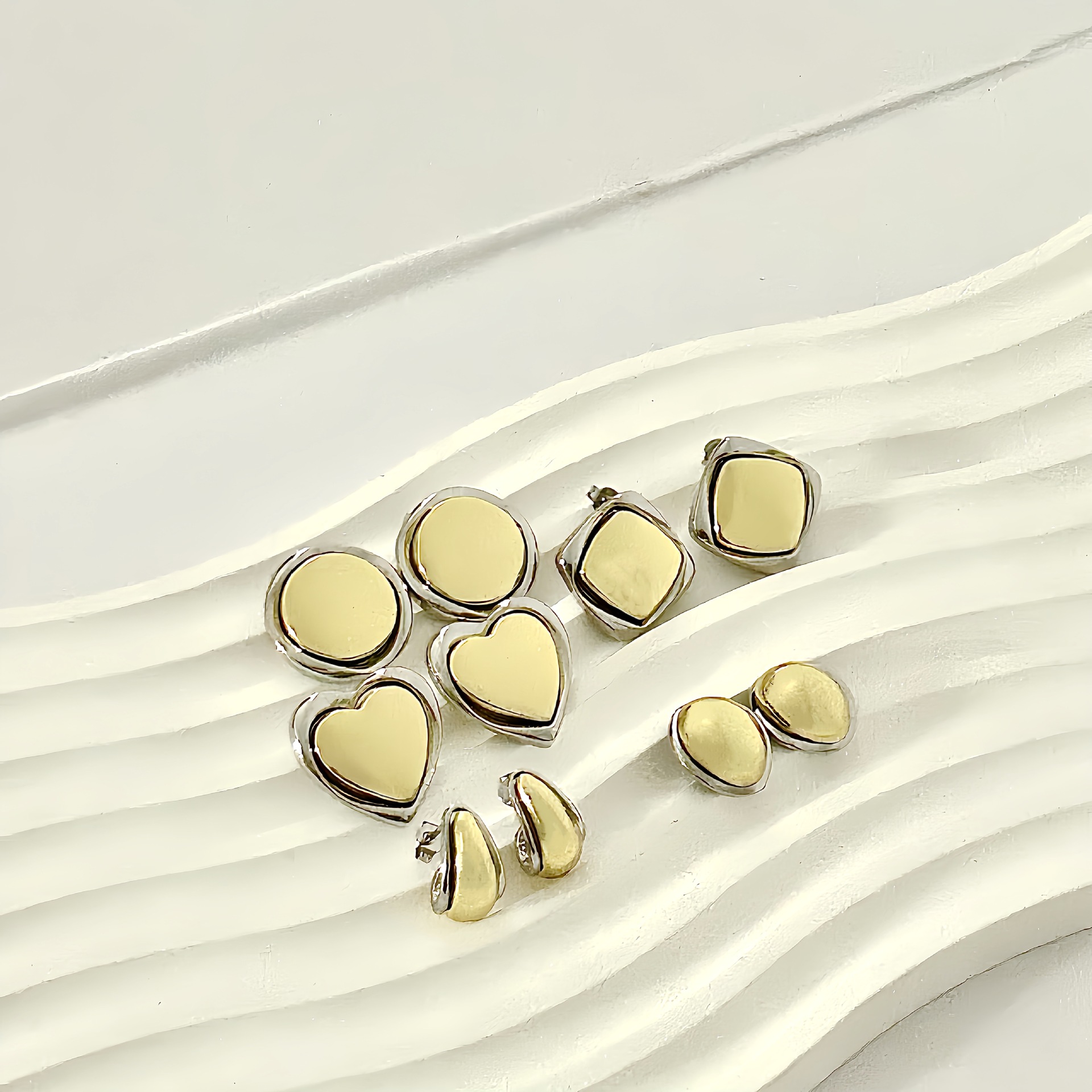 冷淡で贅沢な風の幾何学的な形の愛の水滴の楕円の正方形の2色のイヤリングの装飾品の銅はシンプルな光沢の耳飾りをめっきします。