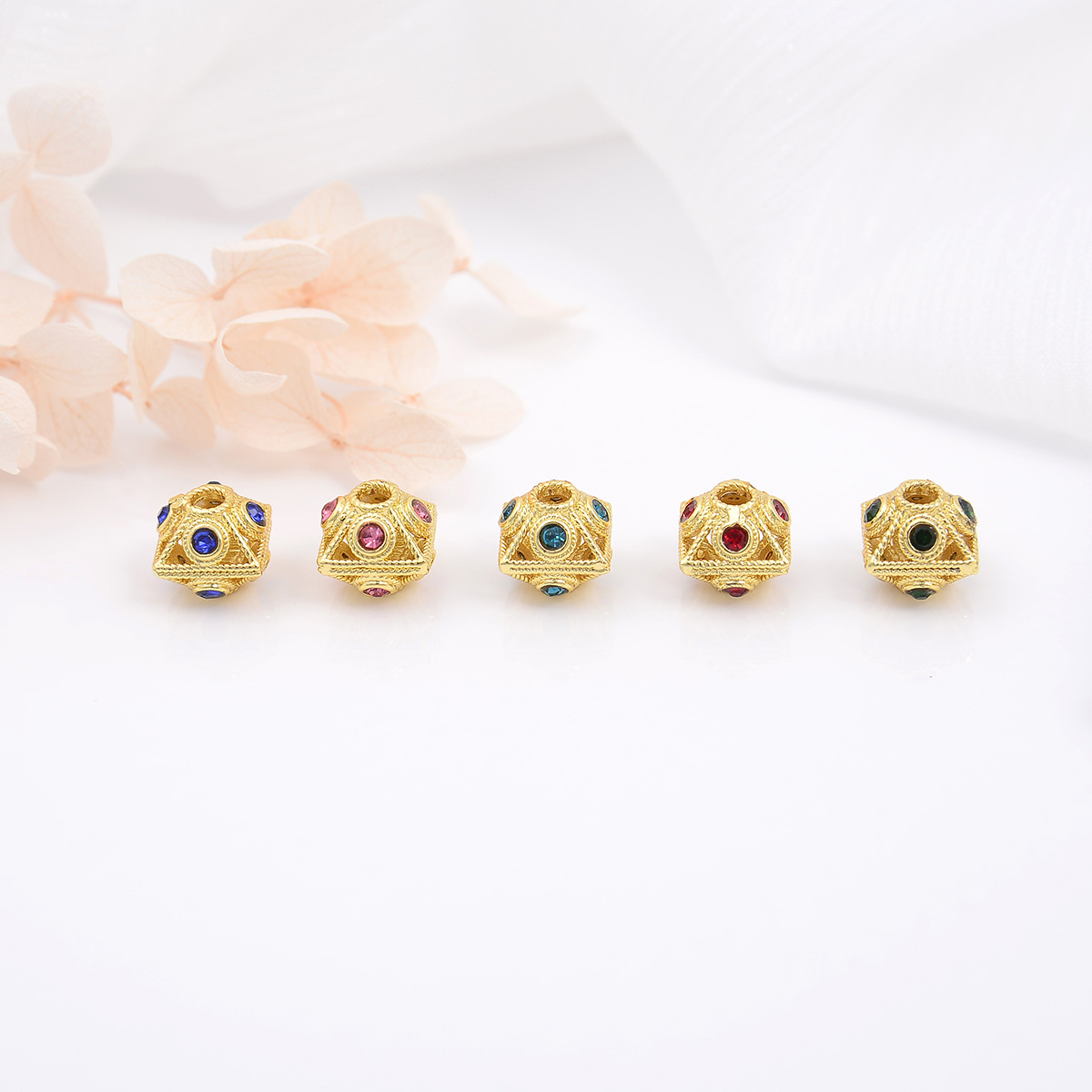 透かし彫り金色銅メッキ18k真金正方形カラーピアスビーズブレスレットネックレスdiyアクセサリーアクセサリーストレートビーズ