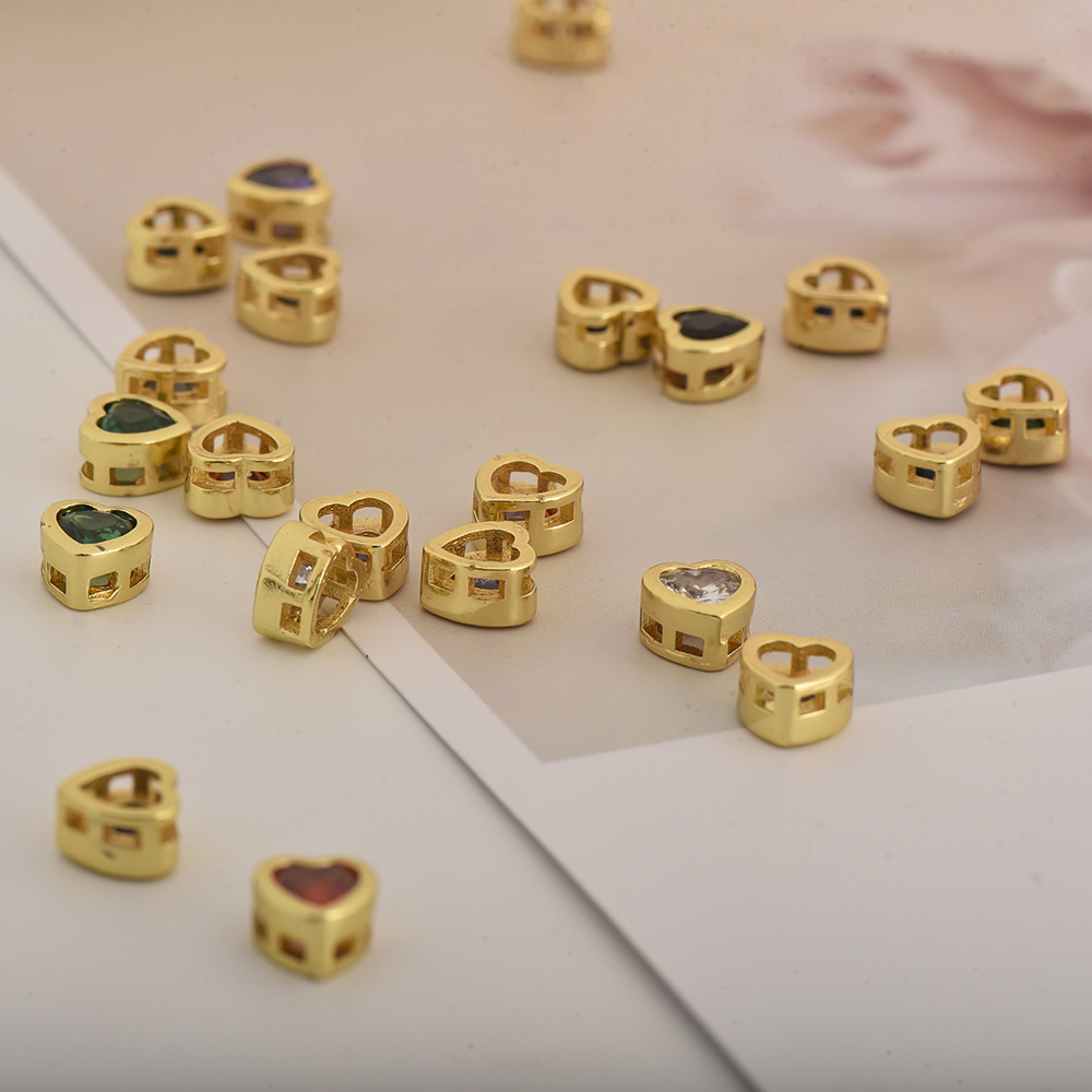 スポット卸売りカラージルコン愛穿孔部品銅保色メッキハート形diyブレスレットネックレス直孔アクセサリー