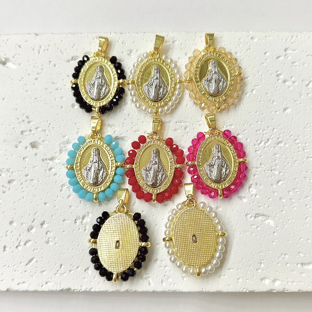 欧米のファッションのレトロな楕円の手織りの聖母マリアのペンダントの女性の銅は2色の保色のペンダントの装飾品をめっきします。
