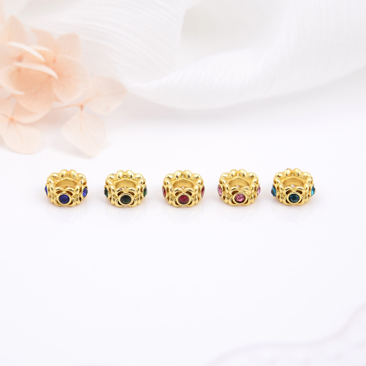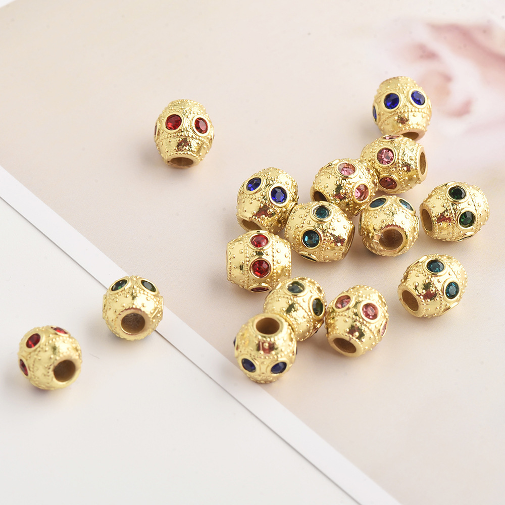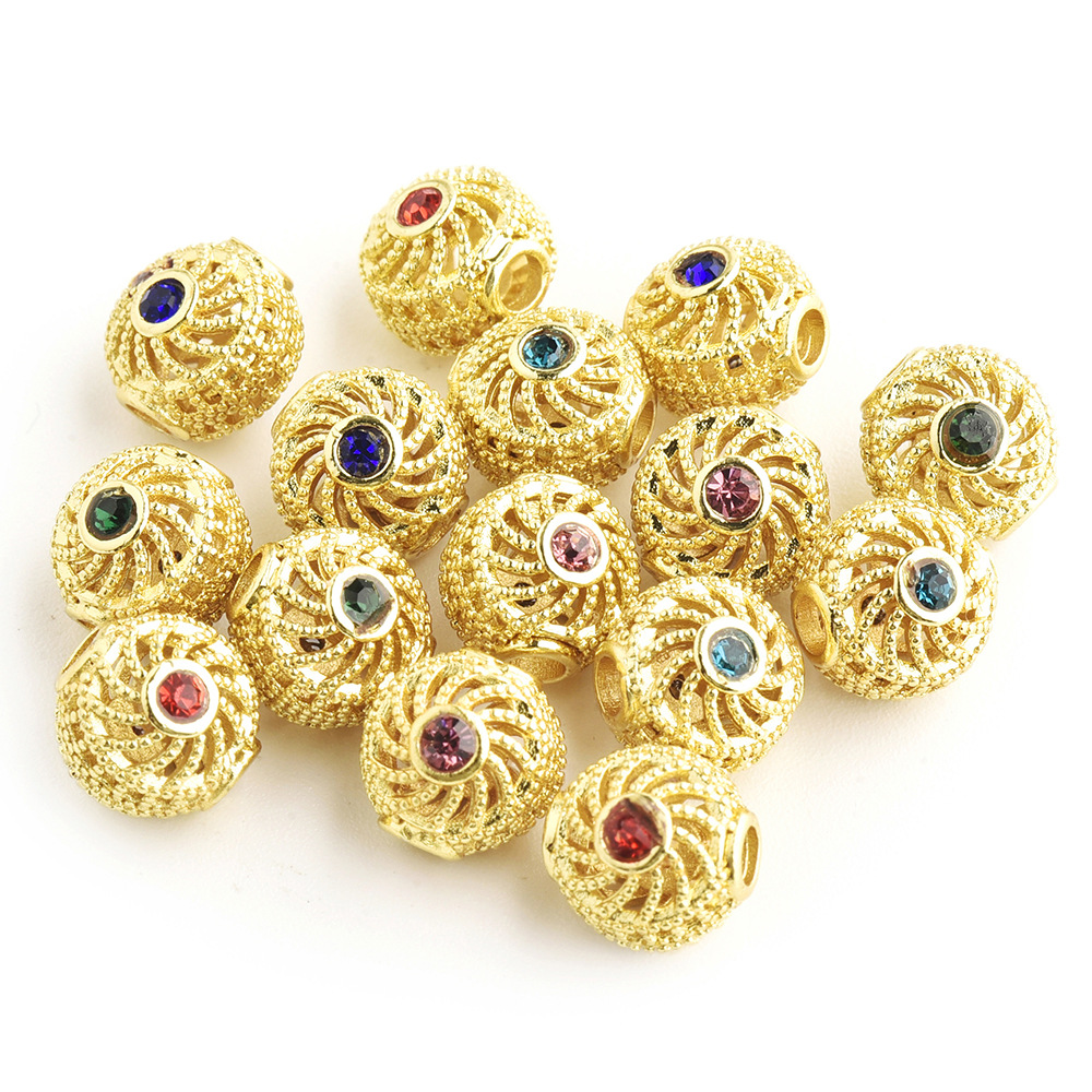 透かし彫り金色銅メッキ18k真金円形カラー穿孔珠ブレスレットネックレスdiyアクセサリー直孔ビーズ