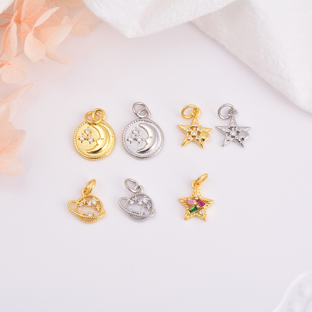 4種類のdiy銅はカラーのジルコンの星の月の地球儀の小さいペンダントのネックレスのブレスレットのイヤリングのアクセサリーの部品をはめ込んでいます。