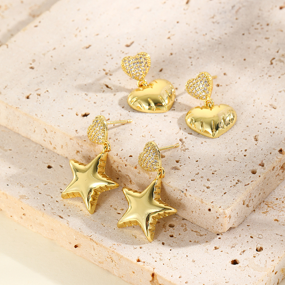 清新で甘い銅はジルコンの光の面の桃の心のピアスを入れてイヤリングを掛けます。