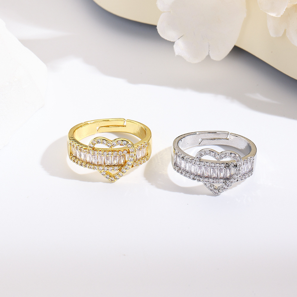 ファッション流行銅メッキ18kジルコン愛 & 桃心開口指輪