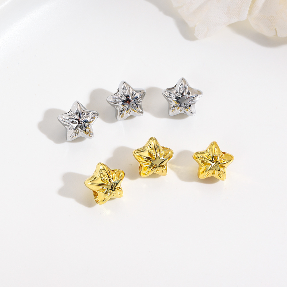 5つのオリジナルデザイン銅メッキ18kゴールド星ストレート穴隔珠diyアクセサリーブレスレットネックレススルー穴ビーズ
