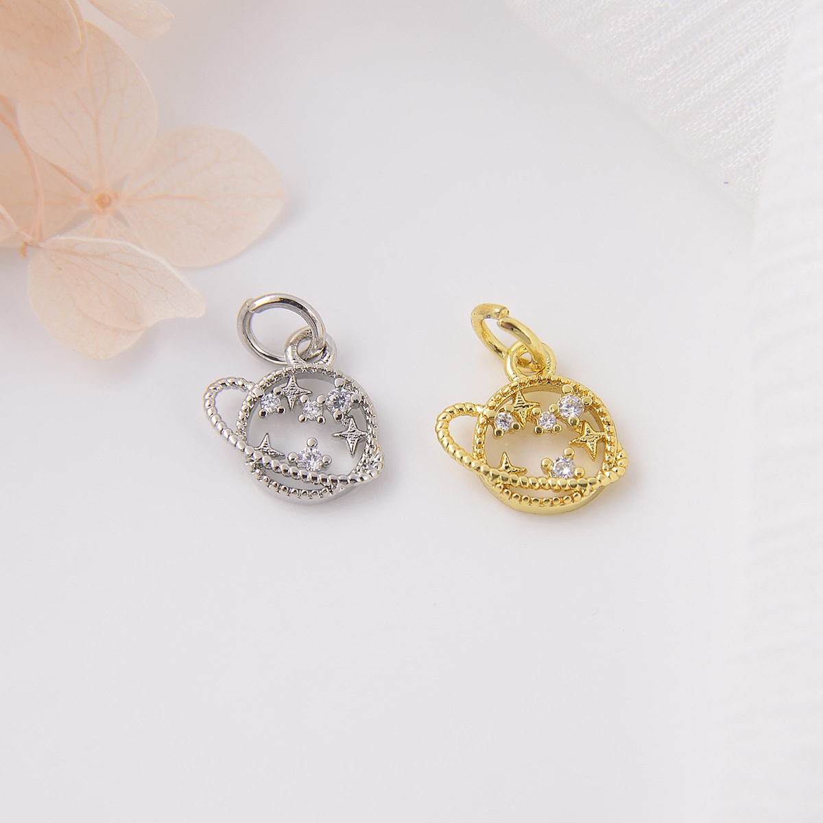 丸い平形の銅の小さいジルコンの星の地球儀の小さいペンダントはイヤリングのブレスレットのネックレスのdiyのアクセサリーの部品に使います。