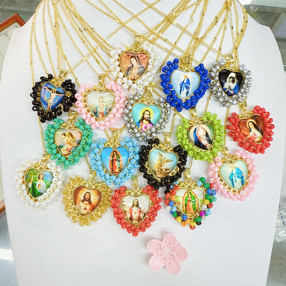 ヨーロッパとアメリカのファッションゴールデン手織りキビビーズ愛聖母ペンダント女性ジュエリーパーソナライズされたオリジナルネックレスペンダント