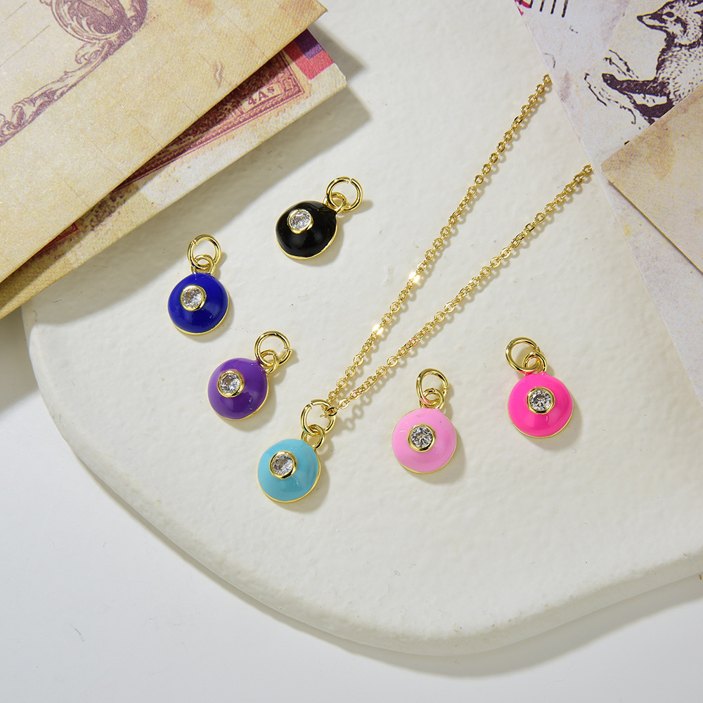 民族風幾何学円形銅マイクロジルコン金色小ペンダント女性ネックレスファッションカラー滴油ペンダントアクセサリー
