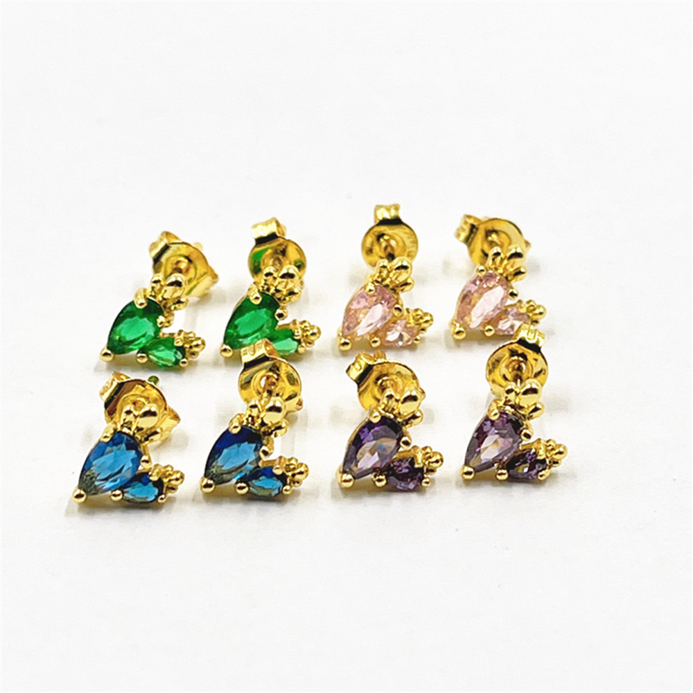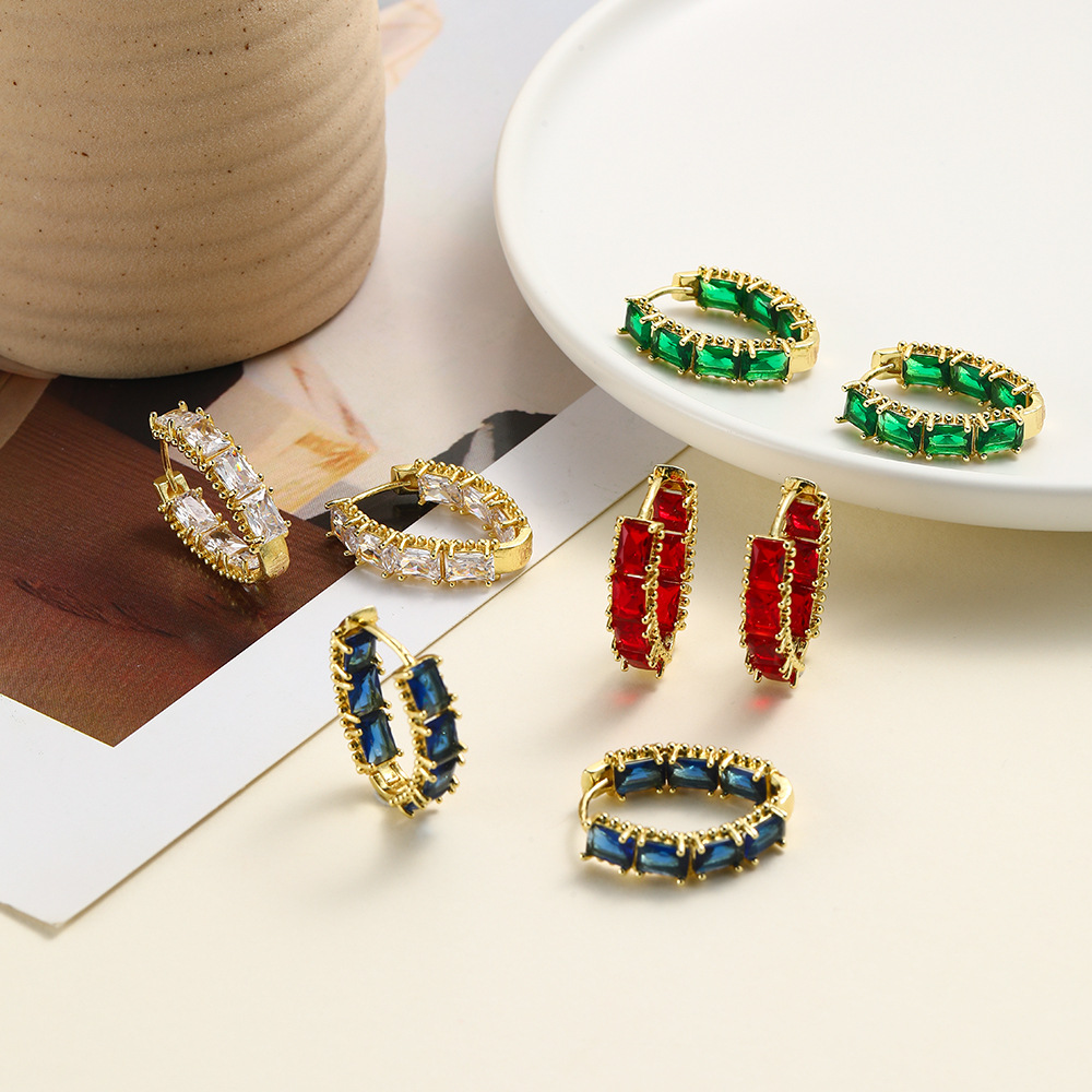シンプルなファッションの正方形のジルコンのカラーのイヤリングの耳のボタンの高級感のins風の冷たい風の女性の復古の耳の輪の卸売り