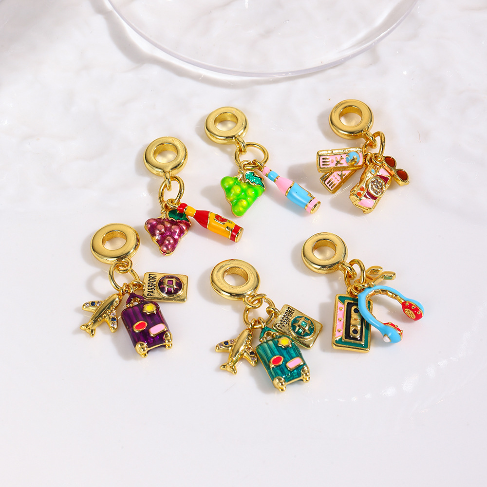 欧米人気の銅滴油グレープコーラスーツケースパスポートカメラヘッドフォン3点セット大穴ビーズペンダント