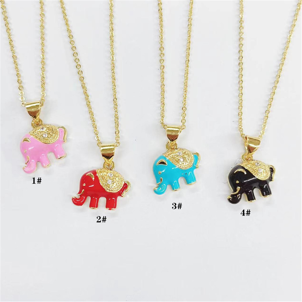 クロスボーダーの人気銅はジルコンの象のペンダントを入れて色の電気めっきの油の4つの色のかわいい動物のネックレスのペンダントを保護します。