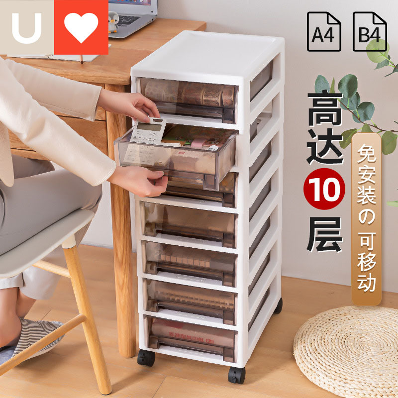 友耐引き出し式収納キャビネット プラスチック製オフィスデスク下収納キャビネット 移動式文房具・書類多層収納キャビネット