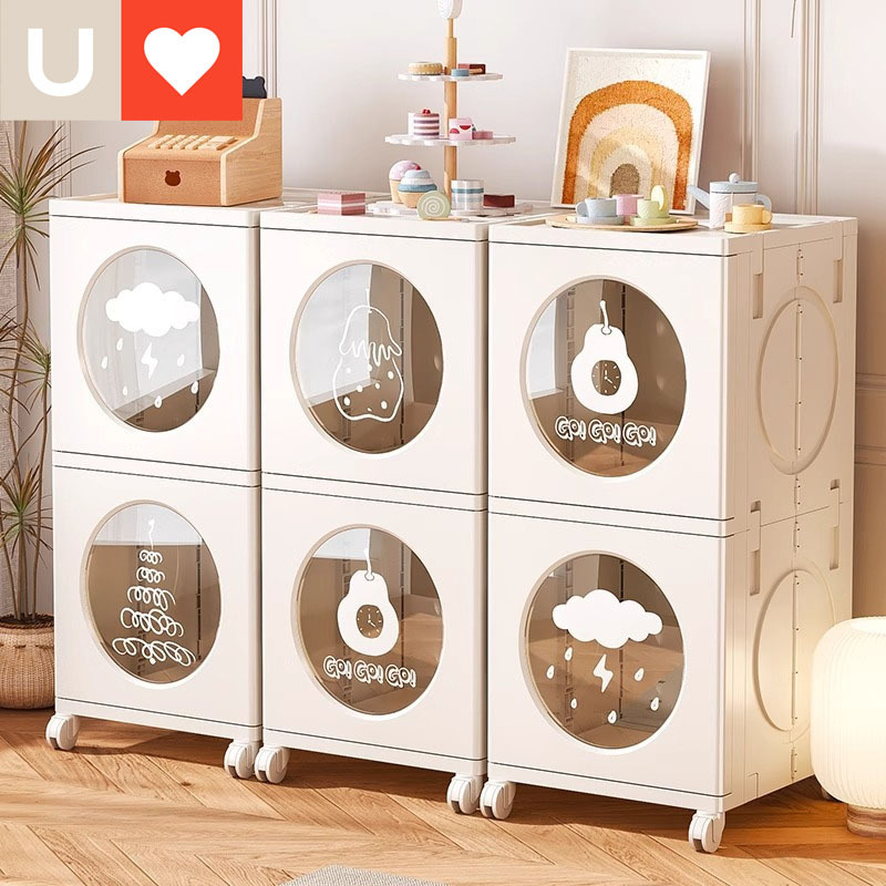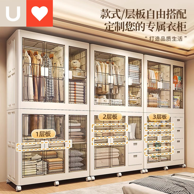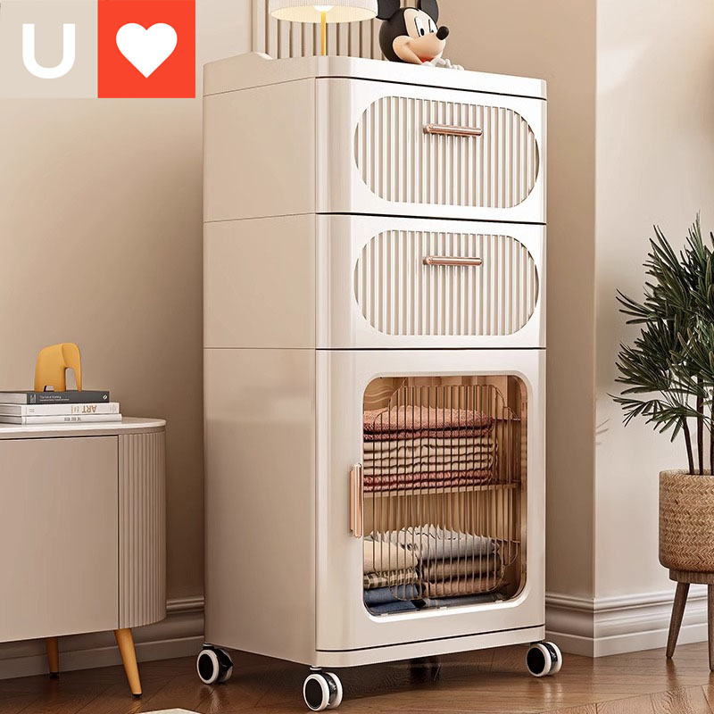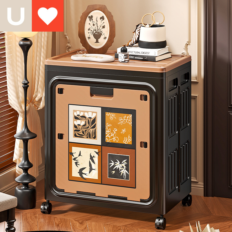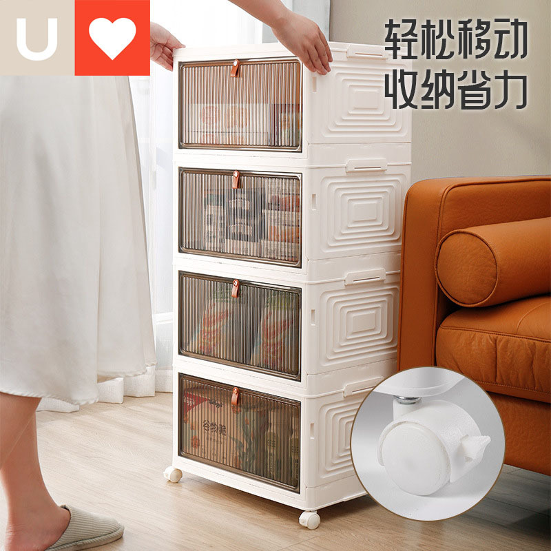 友耐折りたたみ収納キャビネット家庭用プーリー付き大容量多格ロッカー寝室リビング収納キャビネット