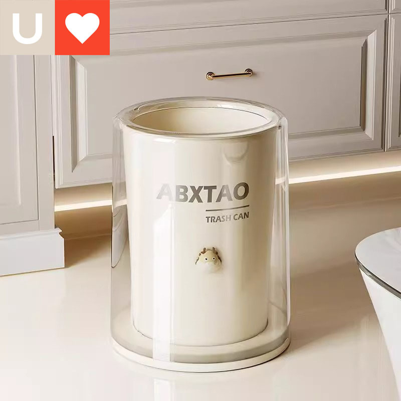 ゴミ箱軽豪華家庭用高颜値大容量円形紙かごキッチン客間寝室透明二重収納桶